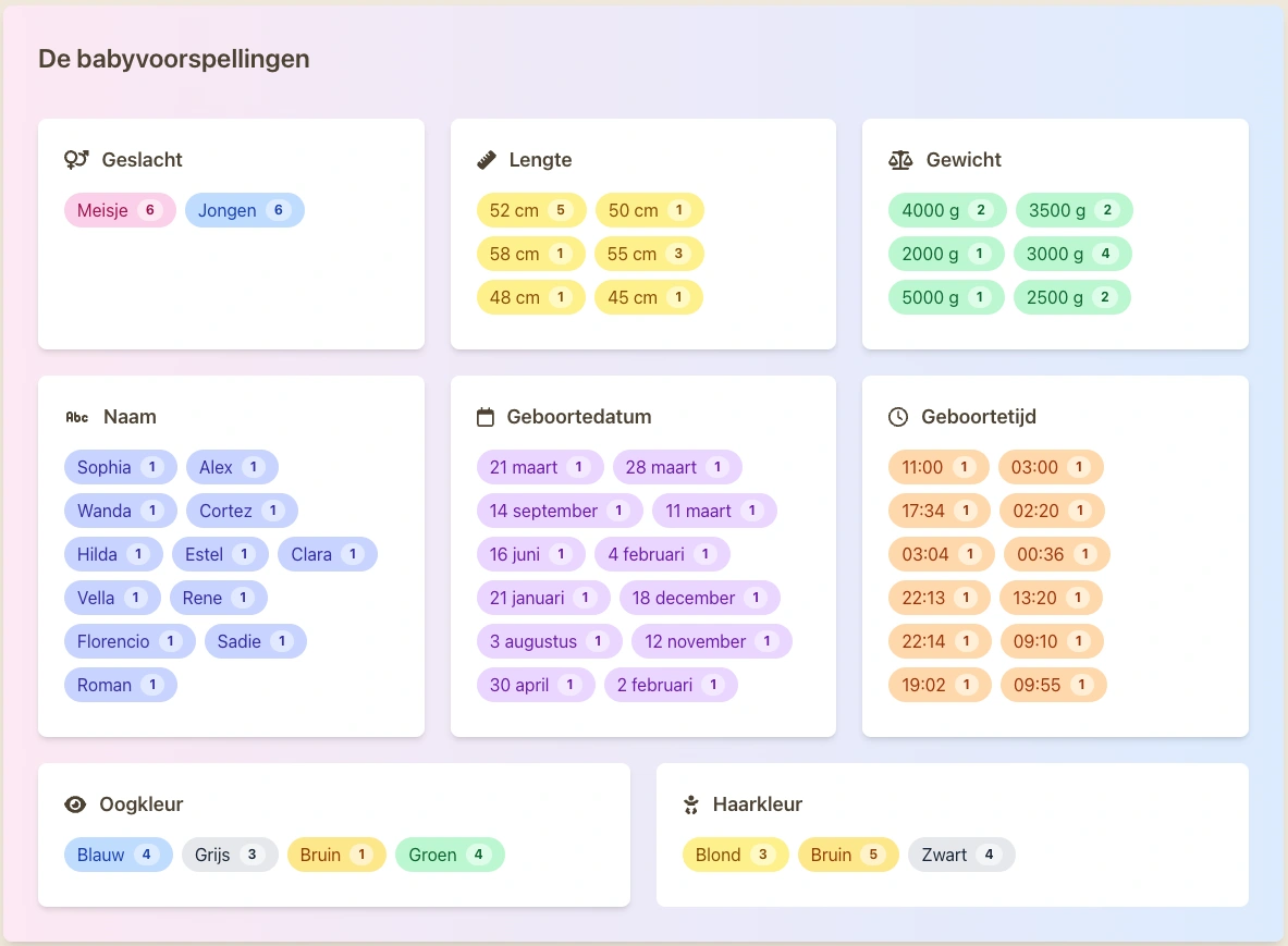 تو چند کلیک یه BabyPool مخصوص بارداریت بساز. سوالا رو شخصی کن، مثل جنسیت، اسم، قد، وزن و بیشتر. یه عکس دعوت شاد و یه ترکیب رنگ انتخاب کن.